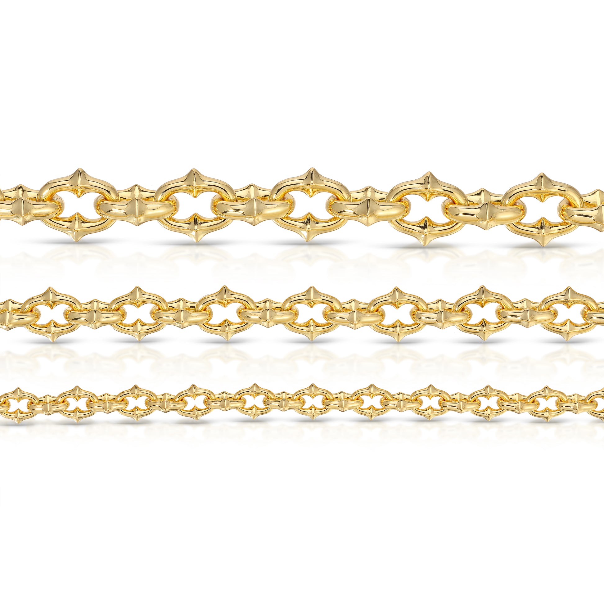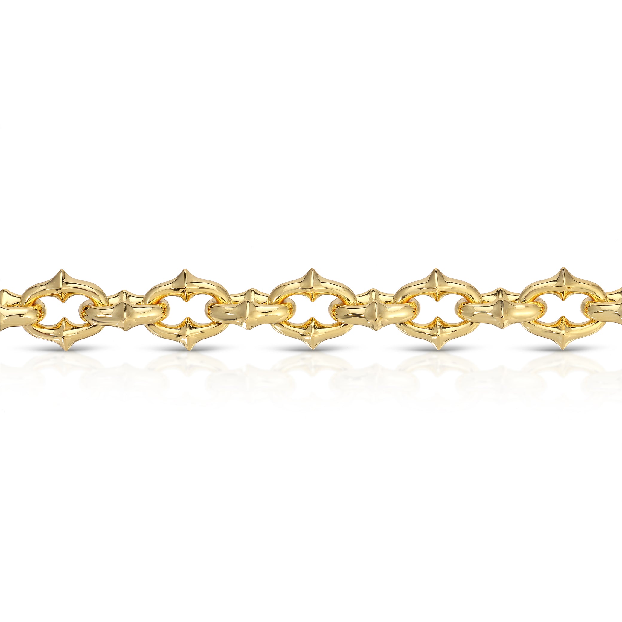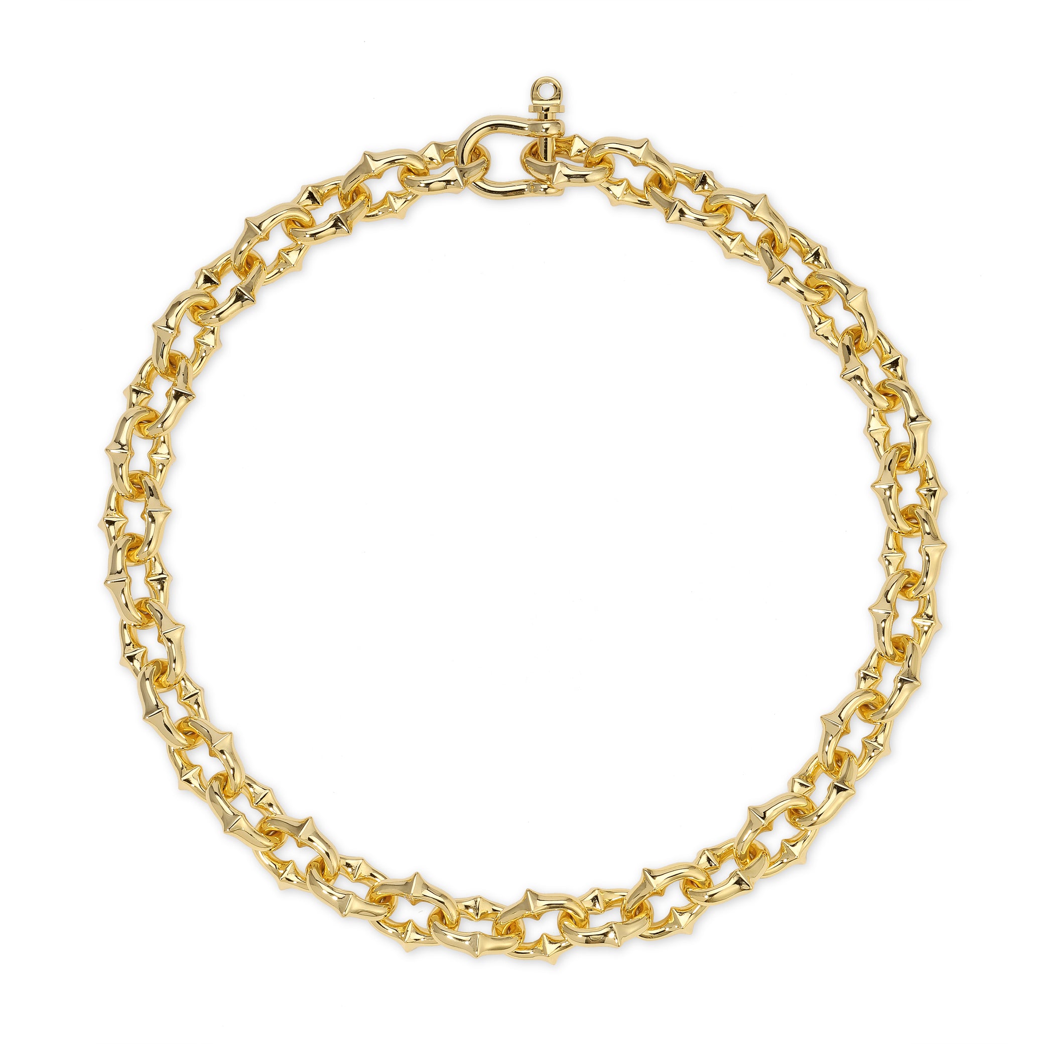 Our proprietary Tattoo Link Chain handcrafted in solid gold. Medium width, 12mm wide. Horseshoe screw closure. Made in Los Angeles.