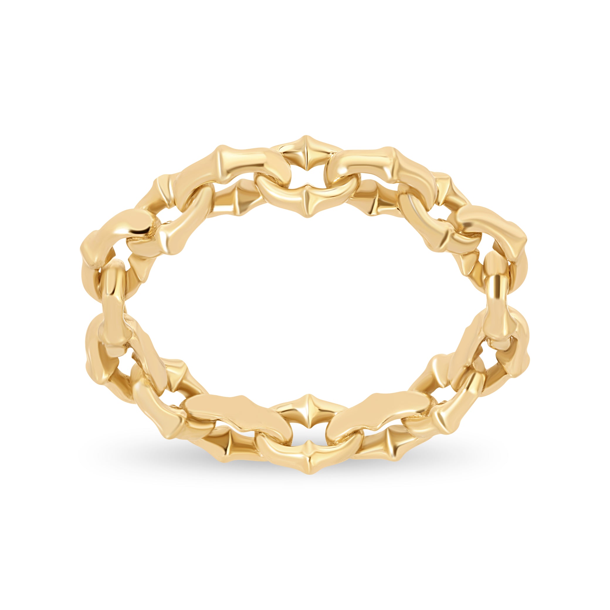 Our proprietary Tattoo Link Ring casted in solid 14k Yellow Gold. Made in Los Angeles. Roughly 6.5mm wide.