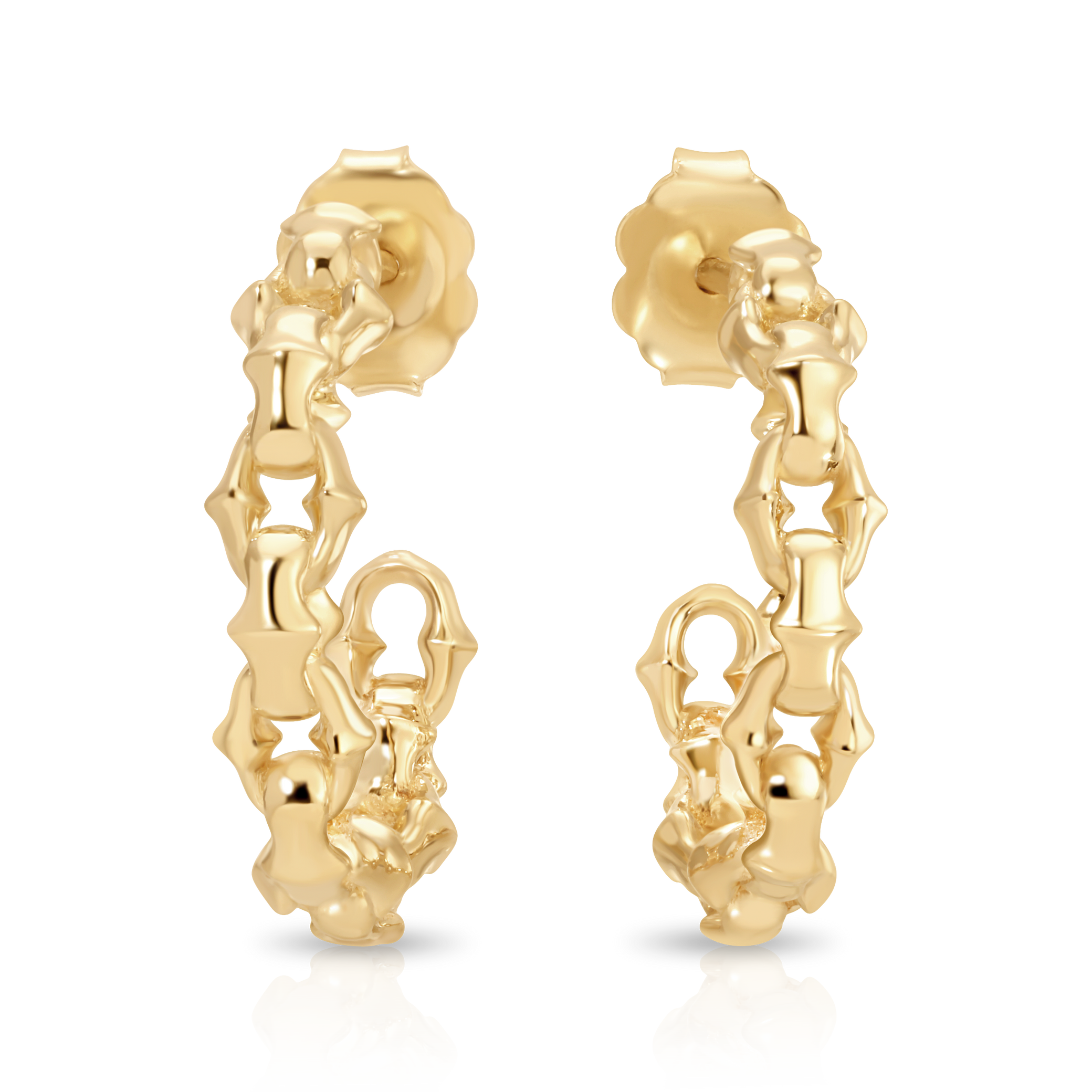 Tattoo Link hoops in solid white or yellow 14k gold. Sold as a pair. Made in Los Angeles.