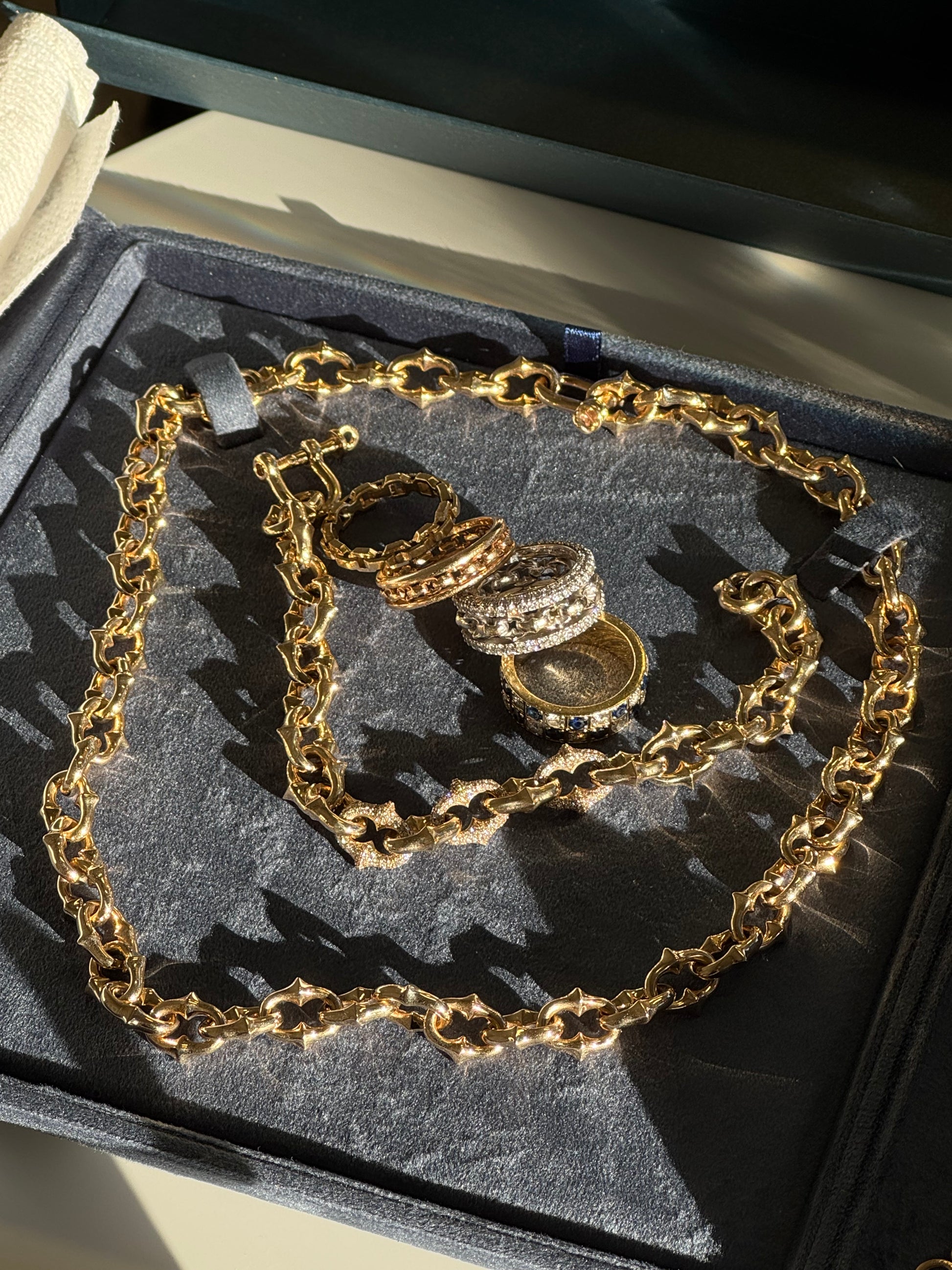 Crafted from more than 1.5 ounces of solid 18k gold*.