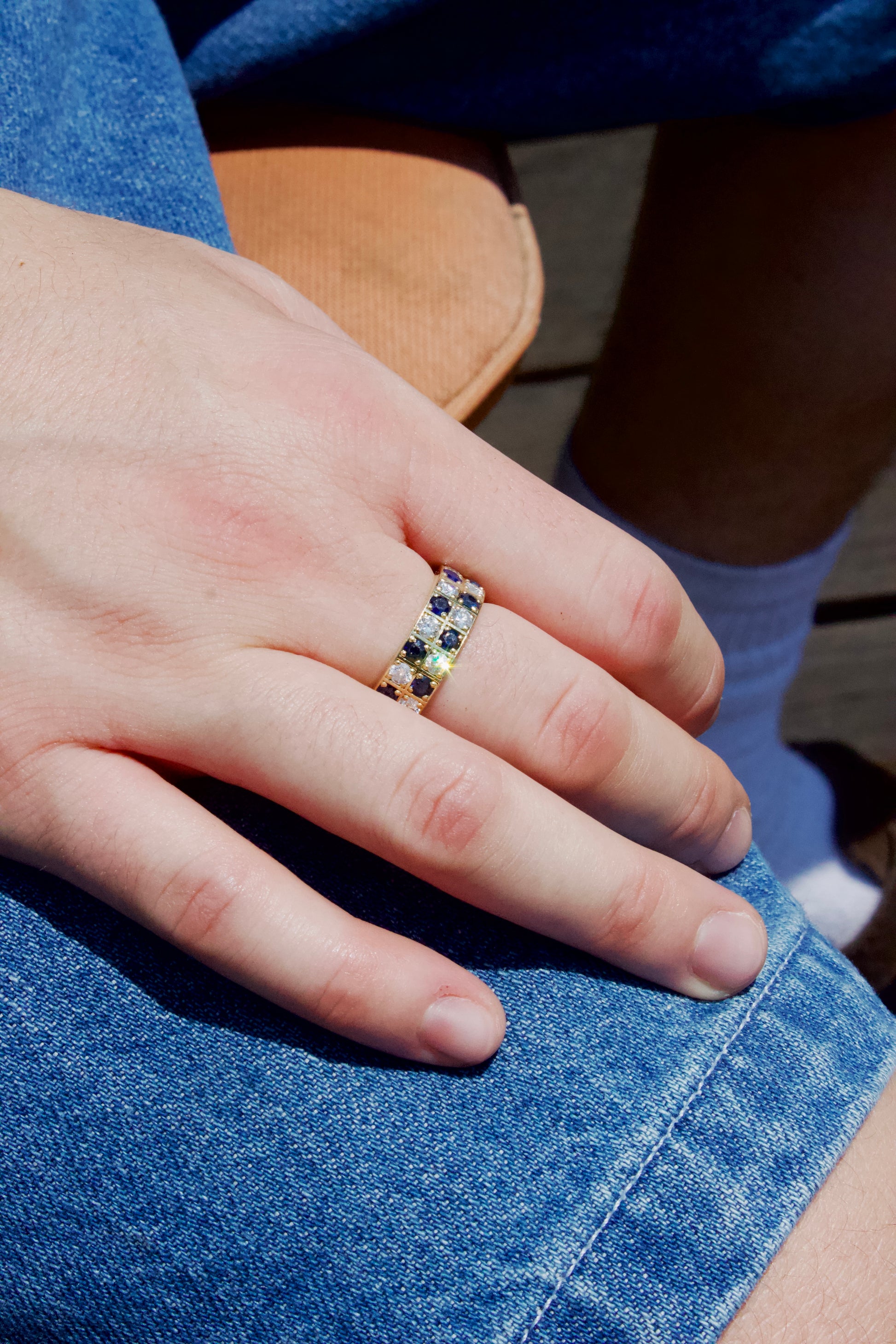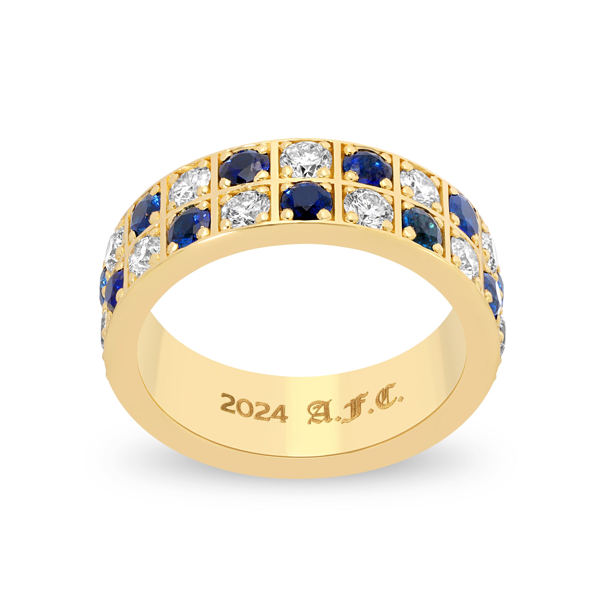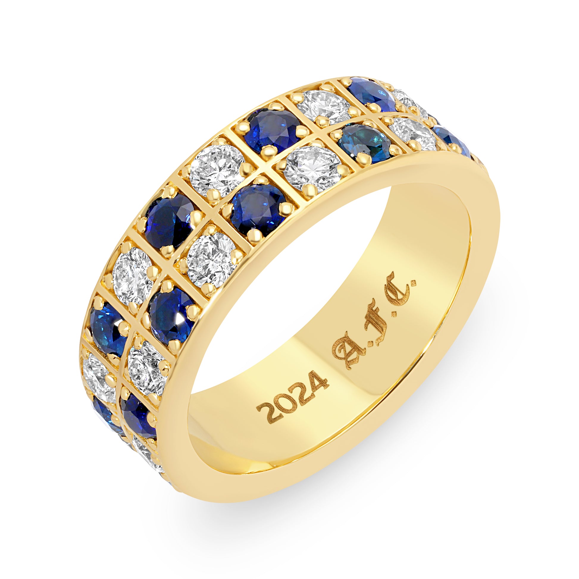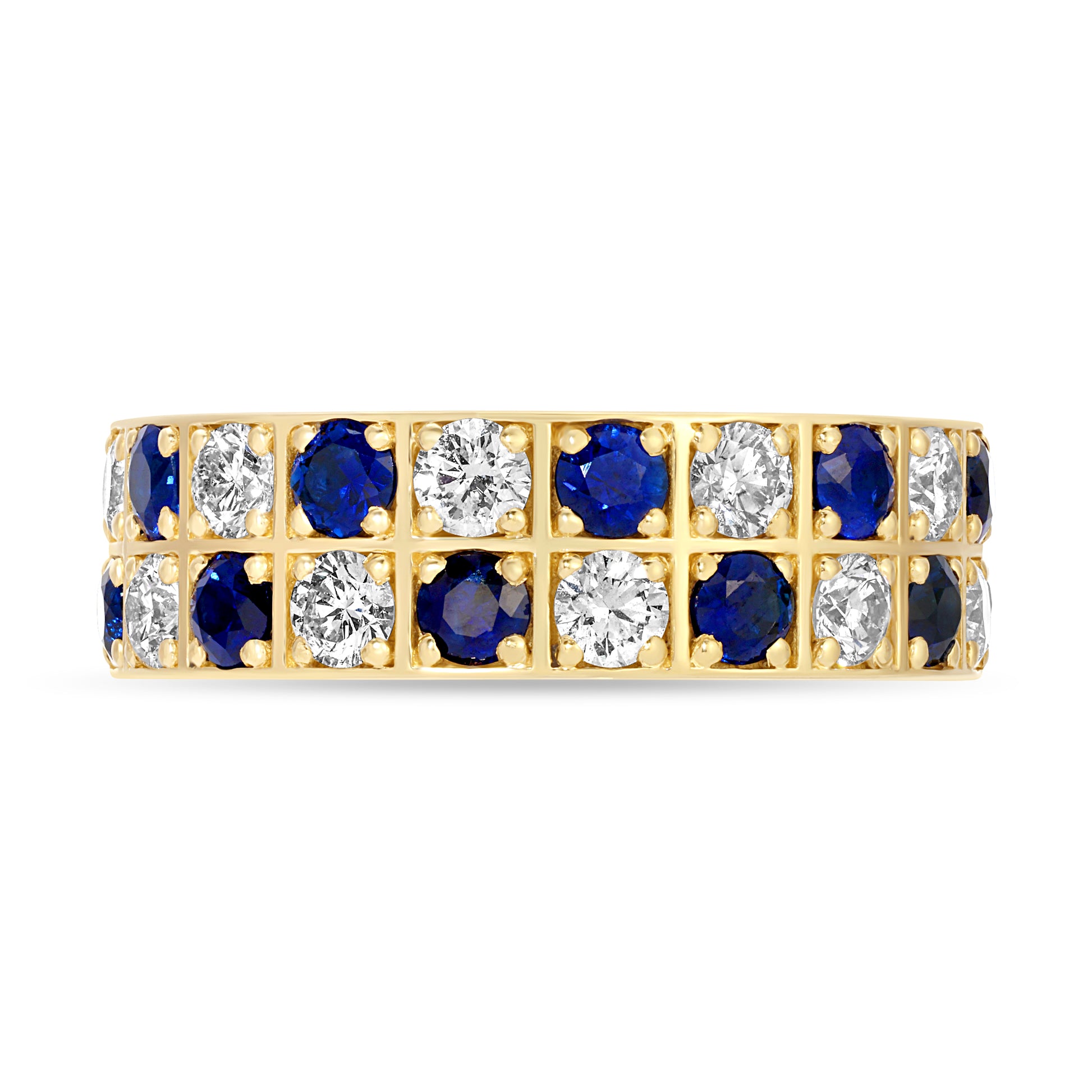 Sapphire and Diamond Checker Pattern Eternity Ring in 18k yellow gold.
