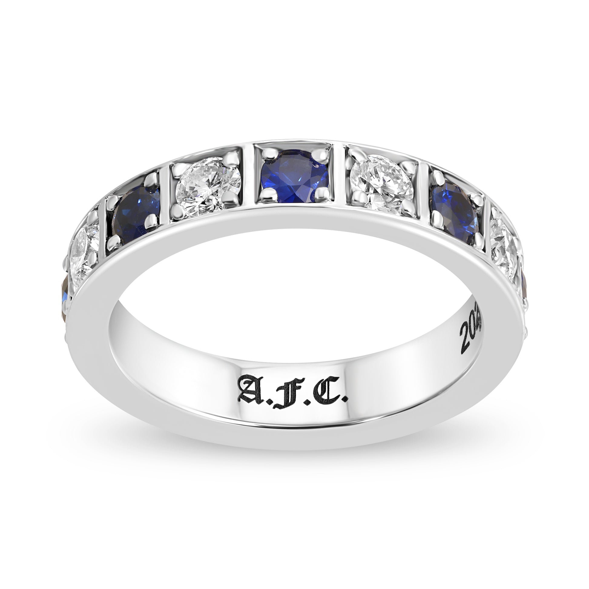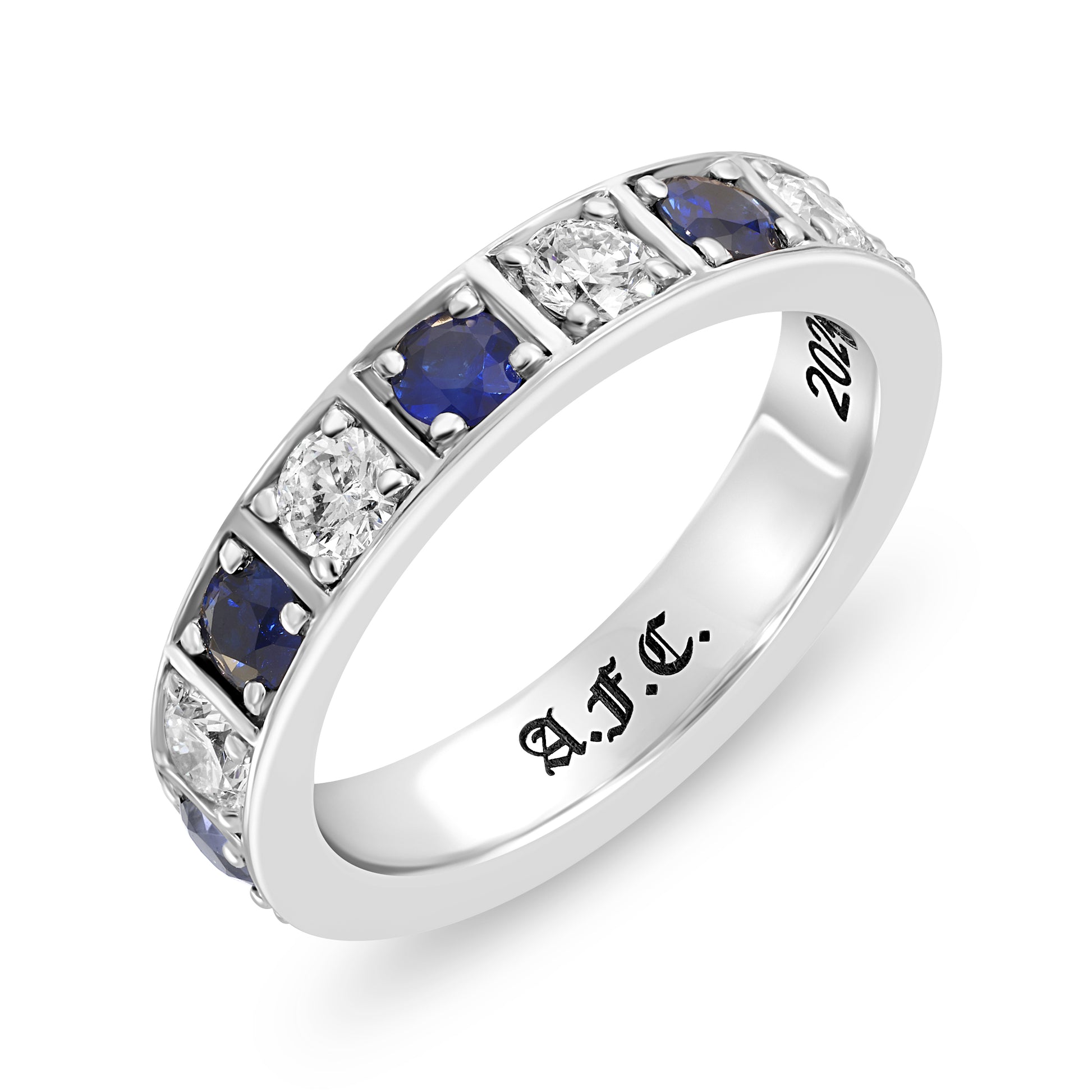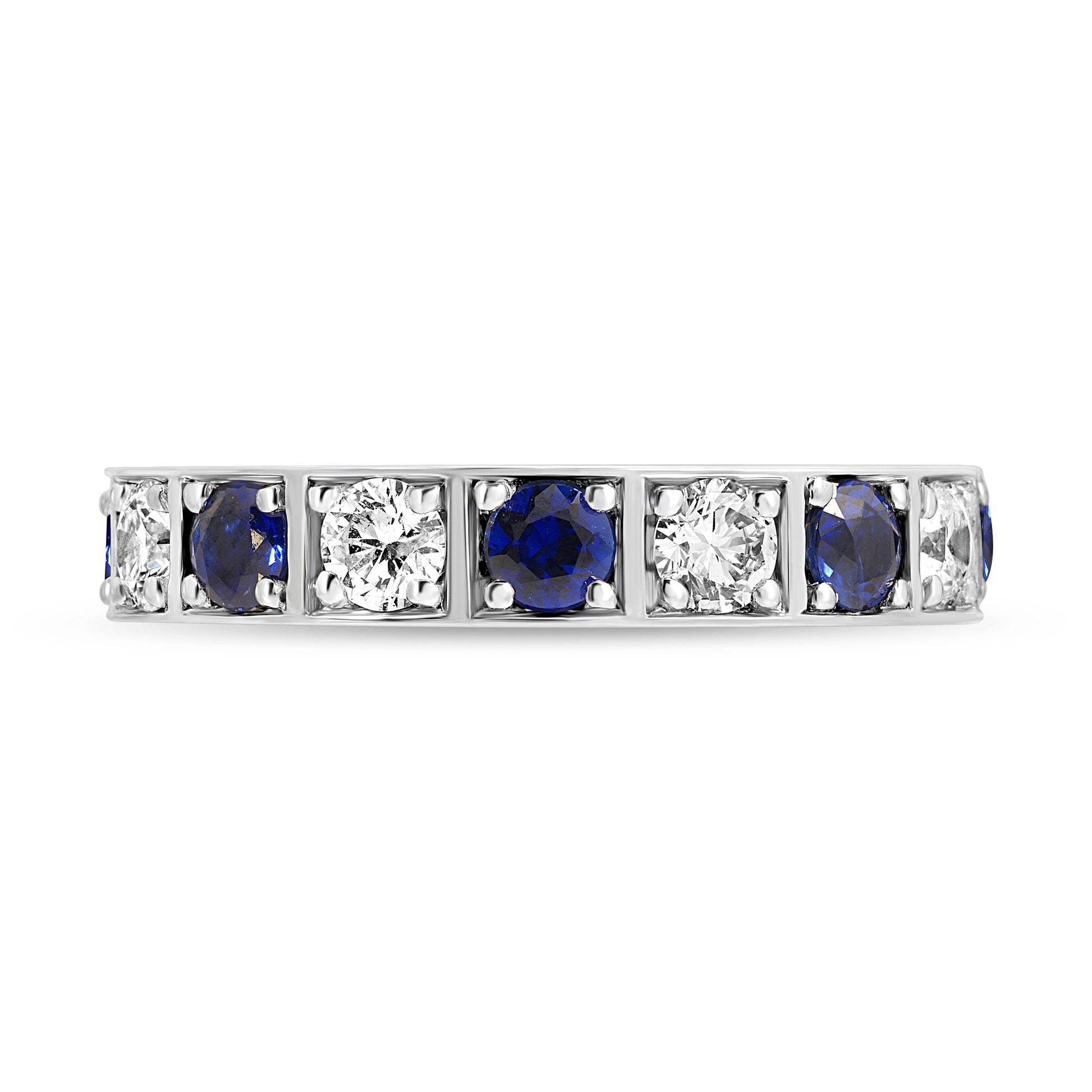 Single row Sapphire and Diamond Checker Pattern Eternity Ring in 18k gold.