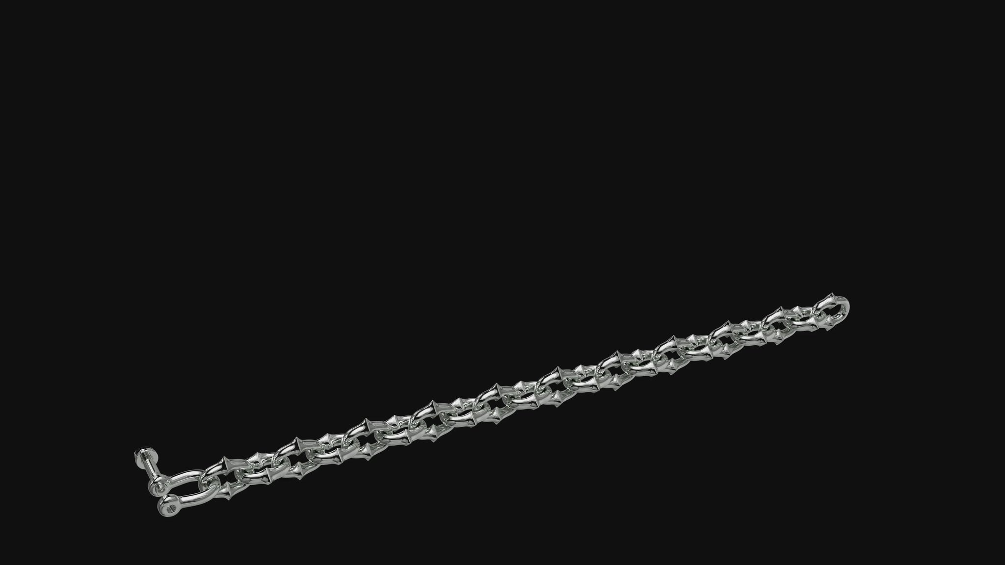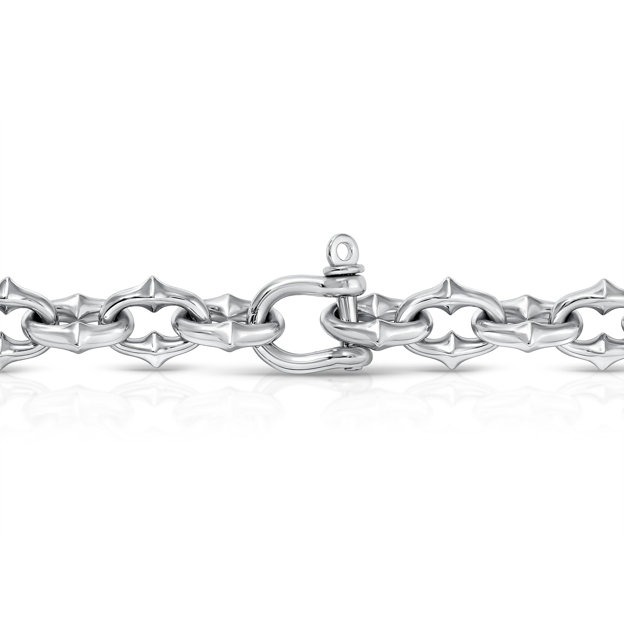 Our proprietary Tattoo Link bracelet handcrafted in solid .925 sterling silver. Small width, 8mm wide. Horseshoe screw closure. Imported.